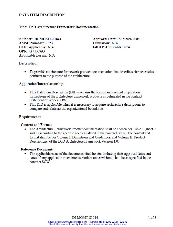 • This Data Item Description (DID) contains the format and content preparation instructions of the architecture framework products as delineated in the contract