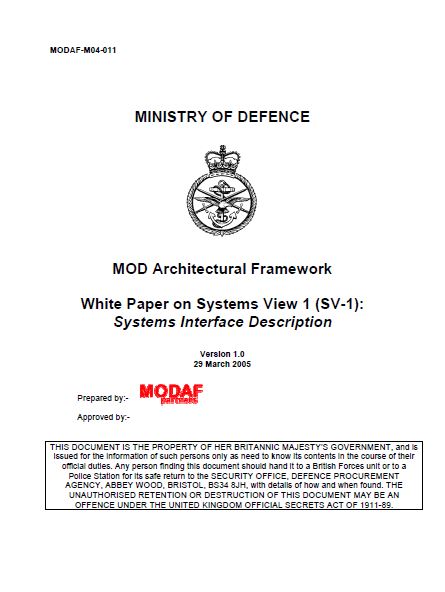 | MODAF White Paper on Systems View 1.pdf | application/pdf | 338.75 KB | English | DOWNLOAD! |