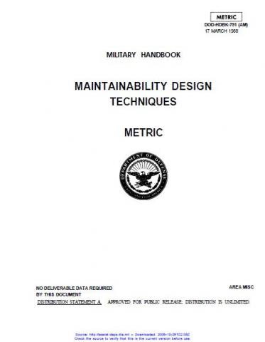 | DoD Maintainability Design Techniques (Metric) Handbook.pdf | application/pdf | 5.18 MB | English | DOWNLOAD! |