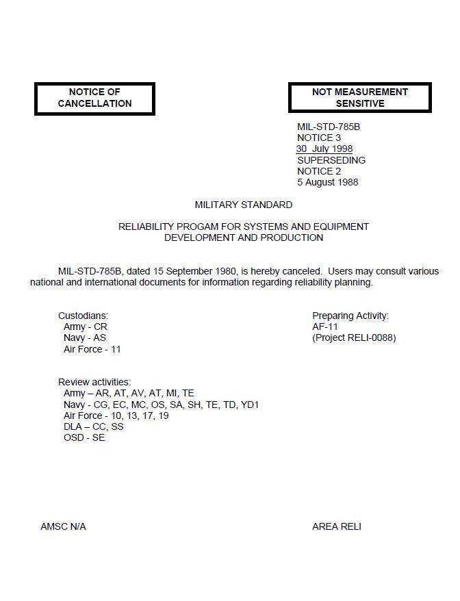 | MIL STD- Reliability Program for Systems and Equipment Development and Production (notice of cancellation).pdf | application/pdf | 4 KB | English | DOWNLOAD! |