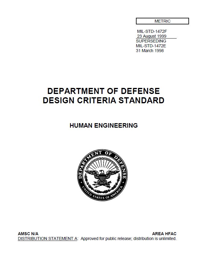 This standard establishes general human engineering design criteria for military systems, subsystems, equipment and facilities.