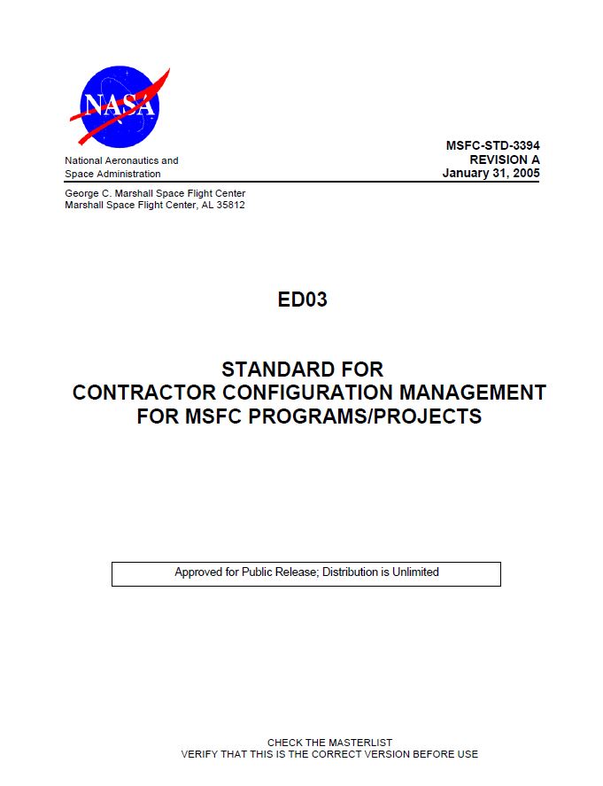 | ED03- Standard for Contractor Configuration Management for MSFC Programs Projects.pdf | application/pdf | 1.08 MB | English | DOWNLOAD! |