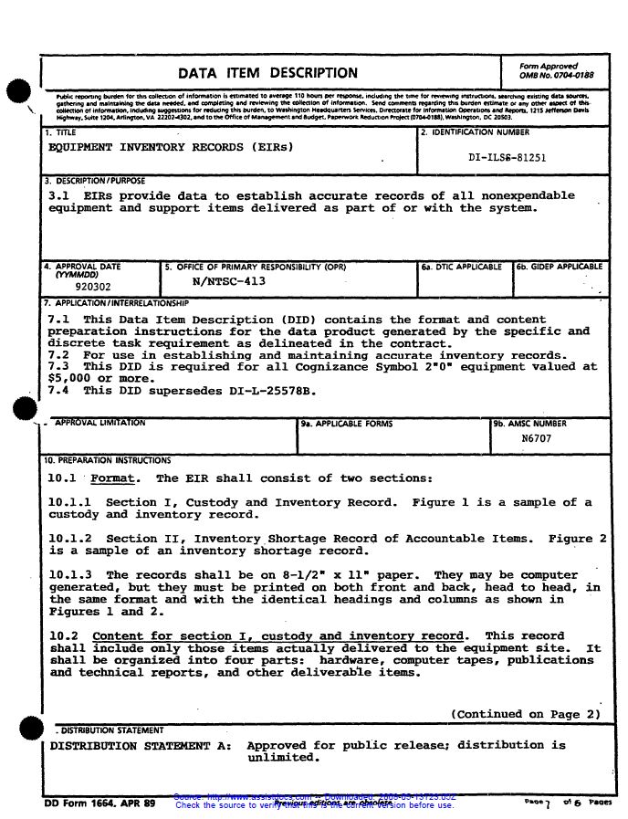 7.3 This DID is required for all Cognizance Symbol 2"0" equipment valued at $5000 or more.