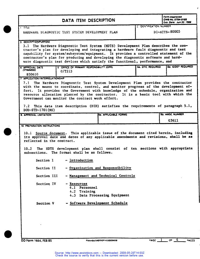3.1 The Hardware Diagnostic Test System (HDTS) Development Plan describes the contractor's plan for developing and integrating a hardware fault diagnostic and test capability for system/subsystem/equipment. It provides a controlled statement of the contractor's plan for producing and developing the diagnostic software and hardware diagnostic test devices which satisfy the functional, performance, and operational requirements of the system/subsystem/equipment. It is used to approve the contractor's approach for a Hardware Diagnostic Test System (HDTS), and to monitor and evaluate the contractor's progress while developing the HDTS.