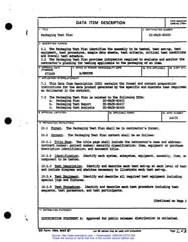 3.2 The Packaging Test Plan provides information required to evaluate and monitor the contractor's planning for testing applicable to the packaging of an item.