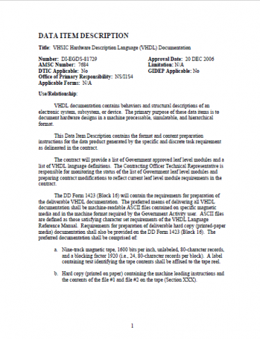 | DID- VHSIC Hardware Description Language (VHDL) Documentation.PDF | application/pdf | 35.76 KB | English | DOWNLOAD! |