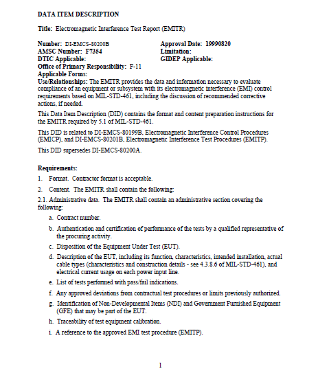 (EMICP), and DI-EMCS-80201B, Electromagnetic Interference Test Procedures (EMITP).