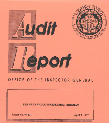 The Audit Objectives were to determine whether DoD VE policies, procedures and implementation of revised OMB Circular NO. A131 were adequate and whether Navy VE savings were valid. We also assessed how extensively the VE program were involved in contracts, whether contractors believed they were encouraged to participate in the VE program, and how VE related to other streamlining or savings initiatives. We also evaluated the adequacy of the management control program applicable to the stated objectives.
